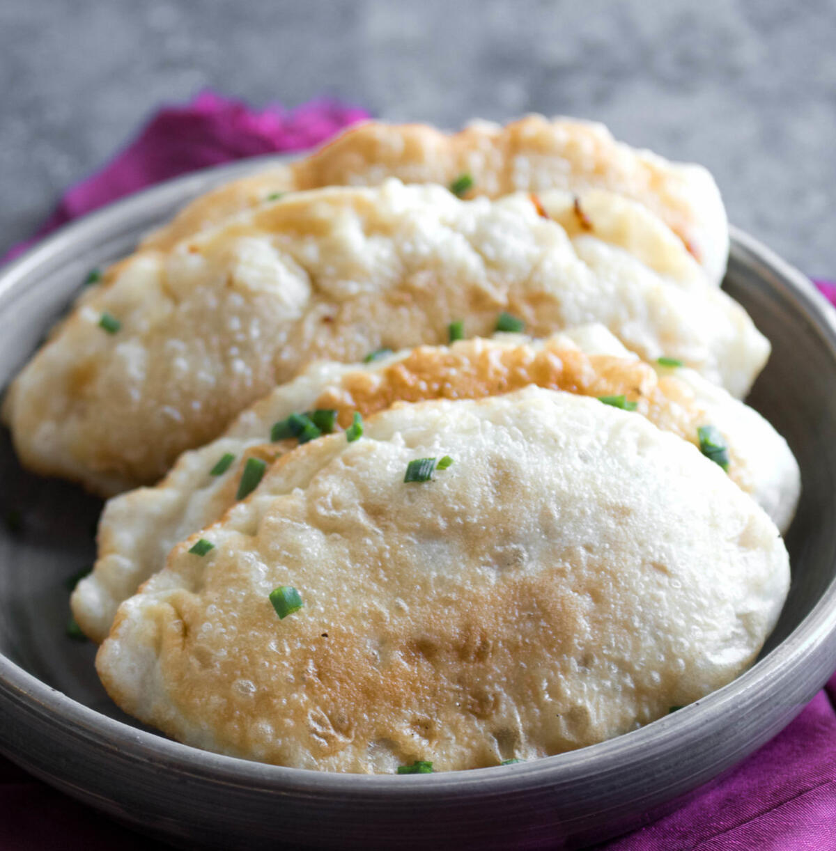 Khuushuur is a type of fried dumpling from the Azim Steppe. It is made with chopped beef and chives seasoned with salt, pepper, and cumin. It is fried until golden brown and thoroughly enjoyed.