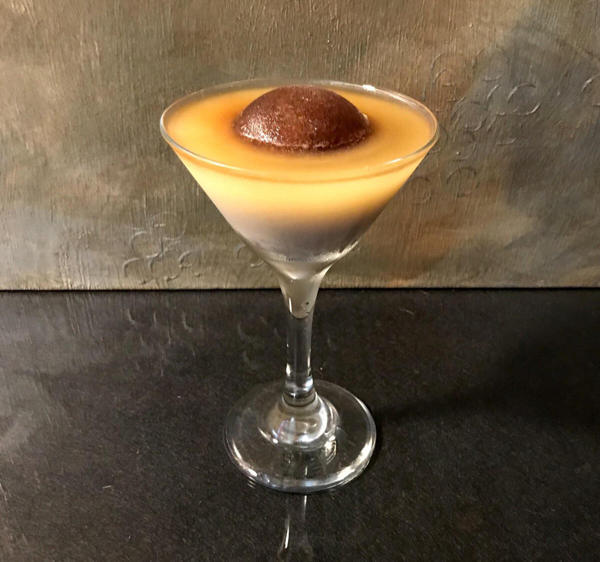 Explore the shadowed side of the moon with this cosmic beverage. Feel the chilling shadows and deep silence with each sip. Taste the sun on your back with citrus and honey, the sand on your feet with mineral tequila, and the vast deepness of the dark bourbon. Float like a flower with damiana liqueur and feel the embrace of the sunless sea with the melting of the ice cube made of dark stout.