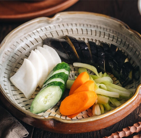 A combination of vegetables pickled in salt, known as shiozuke, gives you the flavor of seasonal vegetables. The salty snack has a crispy texture and an addictive taste.