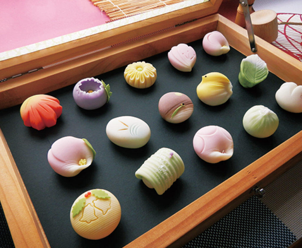 A Hingan confection that is best paired with tea. The dough is made with rice flour, azuki beans, and agar. It is aim to be pleasing to the eye and soften the bitterness of teas.