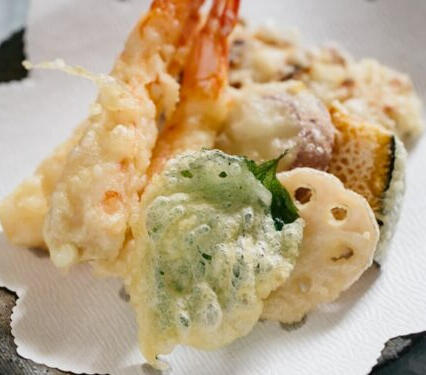 Mixed variety of tempura featuring shrimp and seasonal vegetables. A popular classic dish.