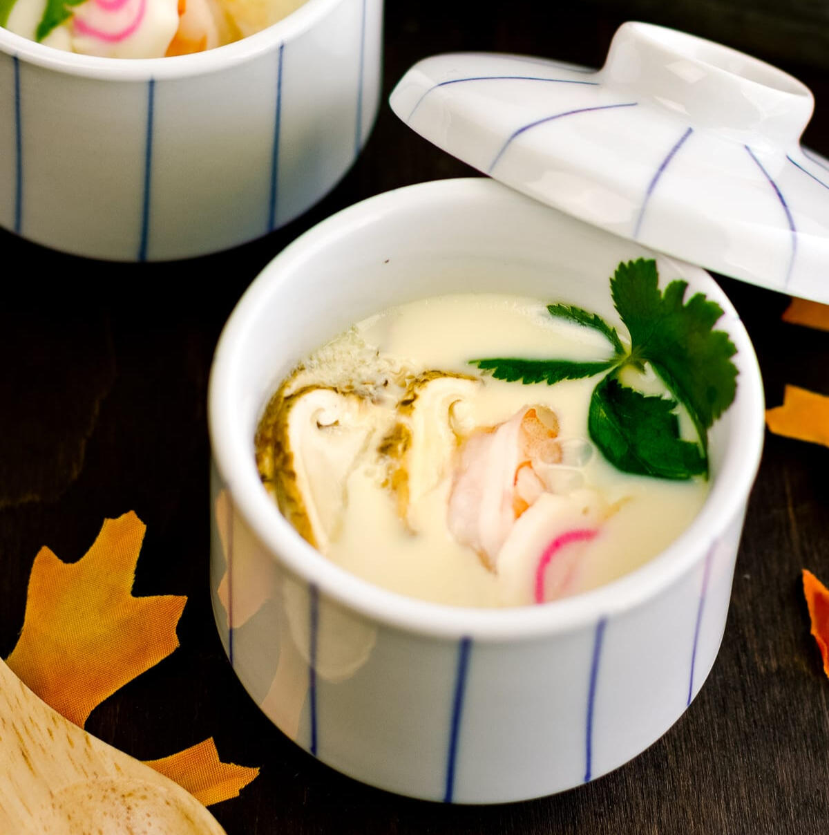 Matsutake Chawanmushi is a refined Hingan savory egg custard that celebrates the autumn season with the prized matsutake mushroom. This dish features a silky, steamed custard infused with a delicate blend of dashi stock, mirin, usukuchi soy sauce, and kosher salt. The custard is elegantly garnished with thin slices of matsutake mushrooms, shrimp marinated in sake, narutomaki (fish cake), and optional ginkgo nuts and mitsuba leaves. The matsutake mushrooms impart a unique aroma and flavor, often likened to truffles in their rarity and delicacy. The resulting dish offers a harmonious balance of umami, sweetness, and earthiness, making it a luxurious appetizer or side dish in Far Eastern cuisine.