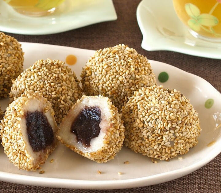 Gomadare Dango, or Goma Dango, are fried sesame balls filled with red bean paste. This dessert has chewy, mochi-like dough crusted in nutty sesame seeds and filled with creamy, smooth red bean paste. It is great to enjoy in small bites or eaten whole in one bite.